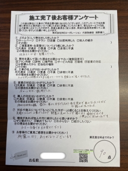 我が家も気づけば築15年。そろそろ外壁の塗装工事でも、と思い、ネットサーフィンをしながらふと目に留まったなっとくさんのホームページを見て、直感的にここだ!と思いました。 すぐに連絡し、無料点検をしてもらった所、細かいながらも、放っておくと後々大変になってしまう様な部分を丁寧且つ的確にご指摘いただきました。 北側にあったコケや、その他、素人では到底見つけられない様なひび割れの箇所を次々と見つけていく様子は、まさに職人の目でした。 施工前のカラーシュミレーションでは具体的なイメージなど、とてもわかりやすくご提案いただき、完工後の仕上がりは、まさに思い通りで嬉しく思っています。 家族一同大満足です。 |